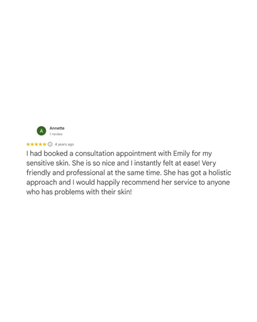 This private 1:1 consultation is your introduction to working with Emily. A chance to be seen, heard, and supported with expert insight and personalised strategy. Whether you go on to start a Skin Transformation Journey or simply want clarity on your current skincare, this session gives you the roadmap.